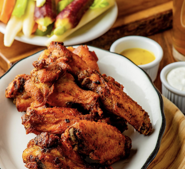 I mean, it’s all in the name! This place specializes in chicken wings. Served in a dozen flavors with an interesting selection of six dipping sauces.